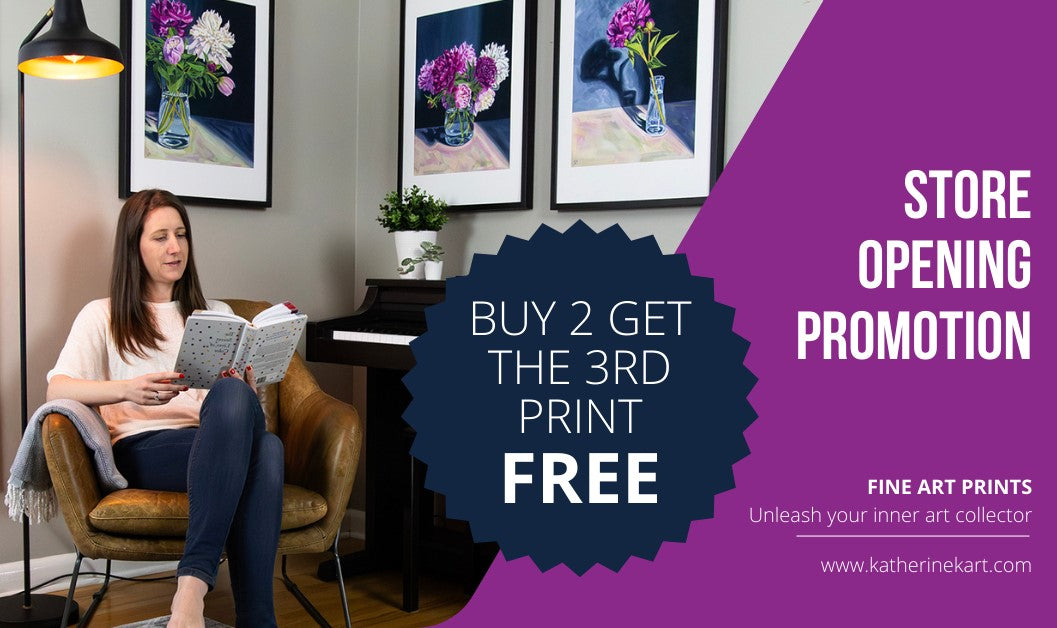 This our year-round bundle promotion, simply select any three fine art pieces of any size and the coupon will be automatically applied at checkout.