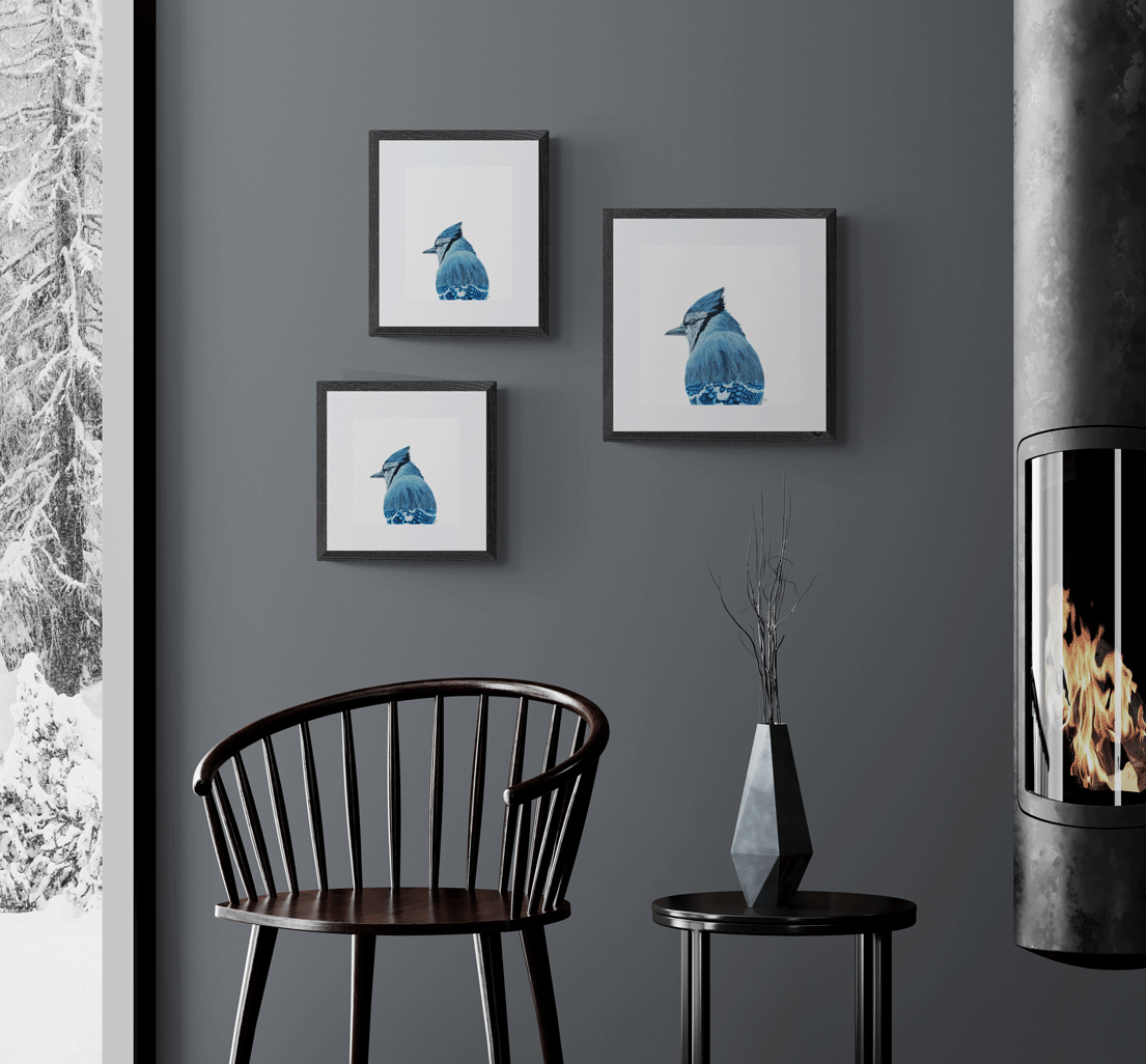 To achieve high-quality reproductions of the original paintings, my studio uses an archival museum-grade method of printing known as giclée. The Birds of a Feather collection is reproduced on a cold press natural 100% cotton rag media with a heavy weight of 340 gsm, free of acid, lignin, chlorine, and optical brightening agents. The media has a natural warm tone with a lovely texture that looks and feels like the original painting.