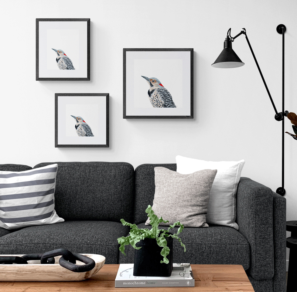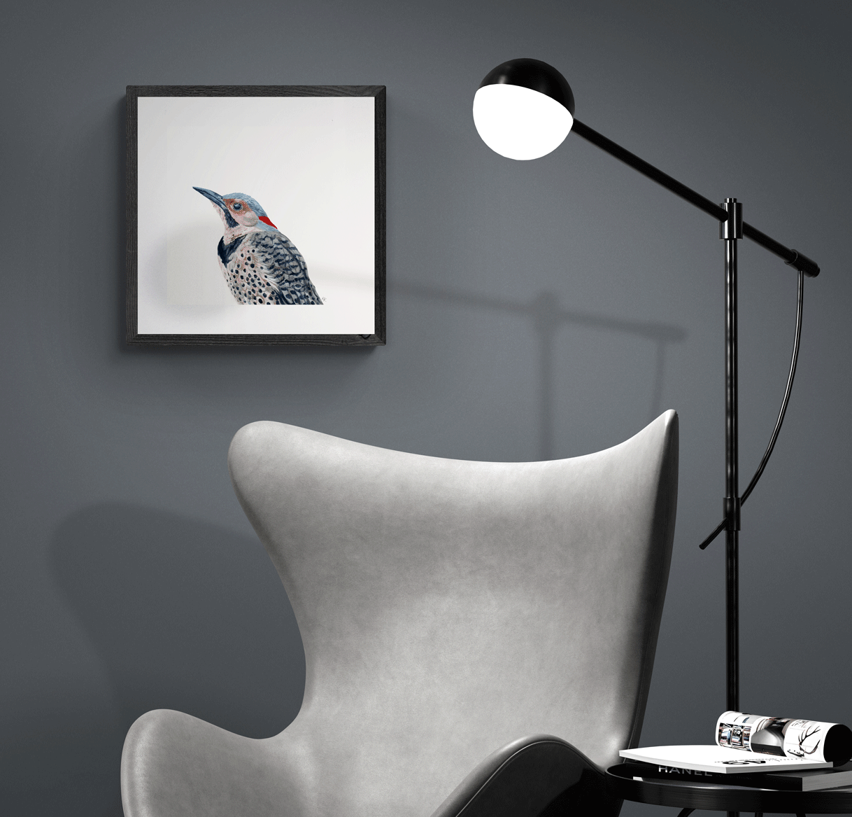 To achieve high-quality reproductions of the original paintings, my studio uses an archival museum-grade method of printing known as giclée. The Birds of a Feather collection is reproduced on a cold press natural 100% cotton rag media with a heavy weight of 340 gsm, free of acid, lignin, chlorine, and optical brightening agents. The media has a natural warm tone with a lovely texture that looks and feels like the original painting.