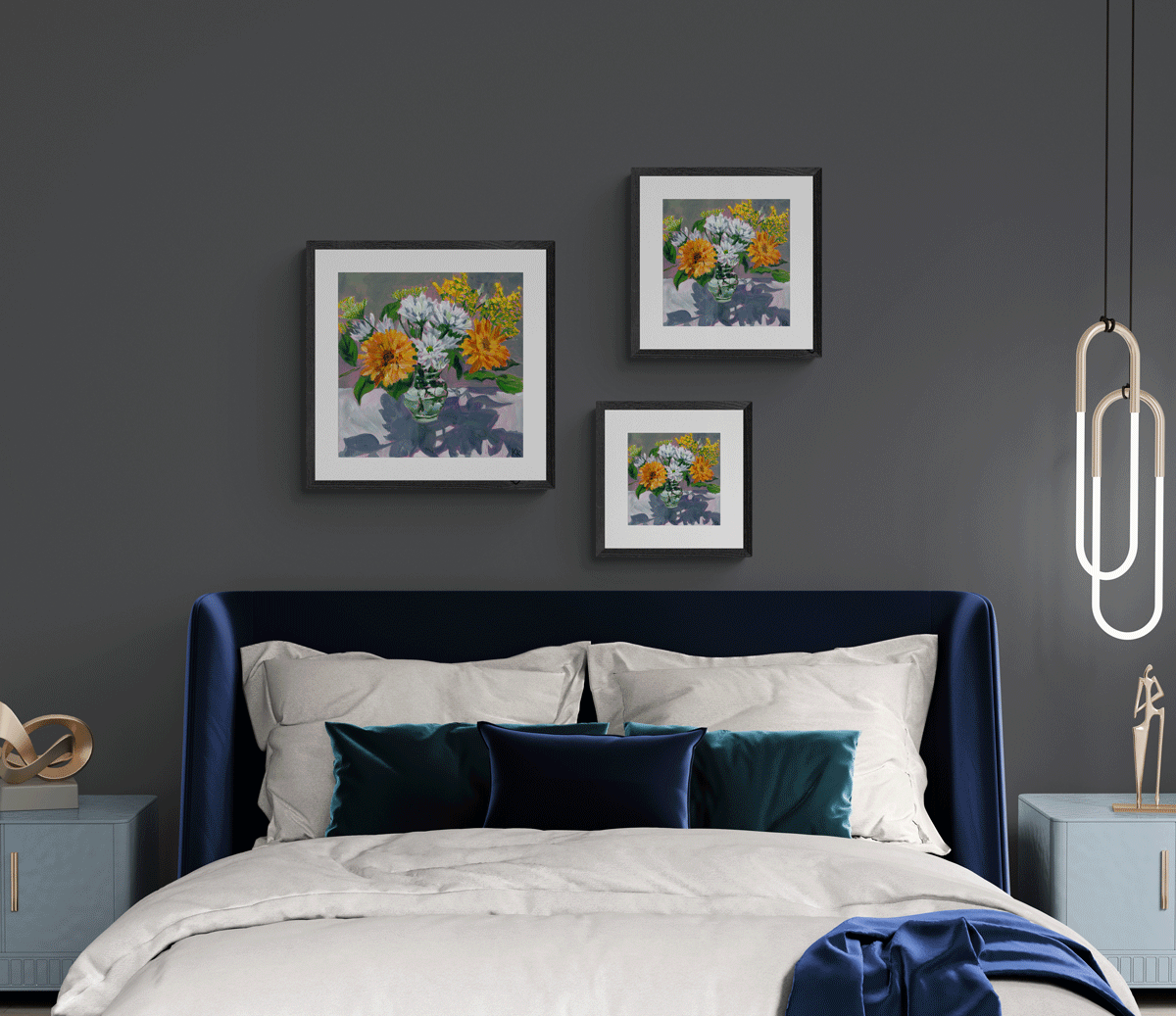 The Floral collection is reproduced in a museum-grade giclée print featuring cold press natural 100% cotton rag media with a heavy weight of 340 gsm. The media has a lovely texture and great color rendition.