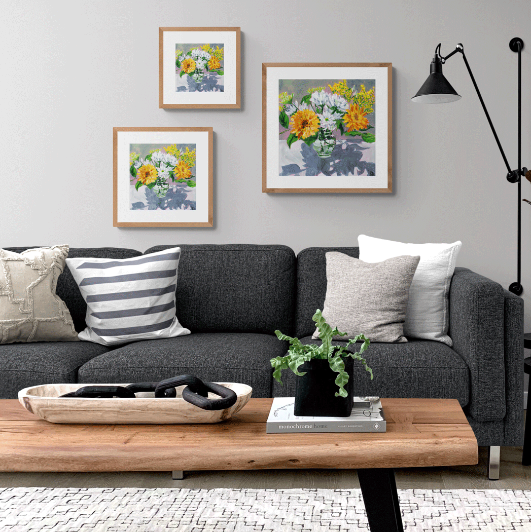 To add variety, you can pair an 8"x8" and an 8"x10" print side by side.
