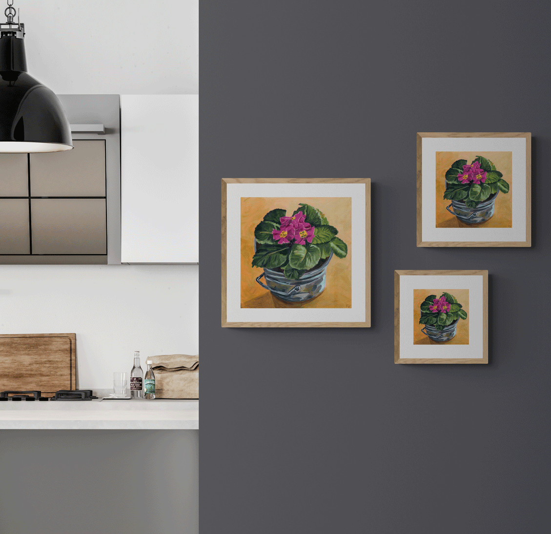 To add variety, you can pair an 8"x8" and an 8"x10" print side by side.