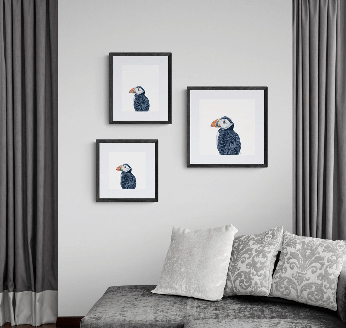To achieve high-quality reproductions of the original paintings, my studio uses an archival museum-grade method of printing known as giclée. The Birds of a Feather collection is reproduced on a cold press natural 100% cotton rag media with a heavy weight of 340 gsm, free of acid, lignin, chlorine, and optical brightening agents. The media has a natural warm tone with a lovely texture that looks and feels like the original painting.