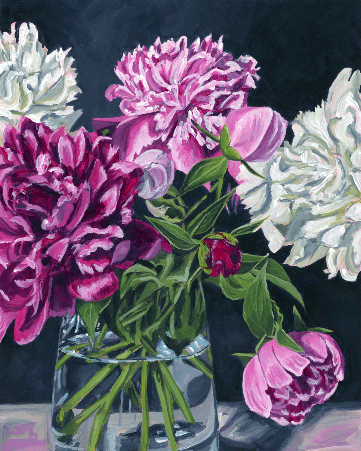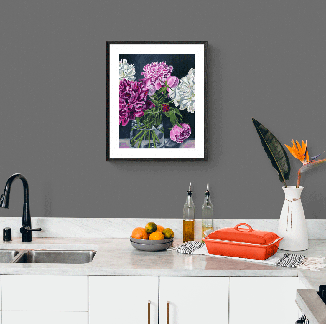 The Peony collection is reproduced in a museum-grade giclée print featuring cold press natural 100% cotton rag media with a heavy weight of 340 gsm. The media has a lovely texture and great color rendition.