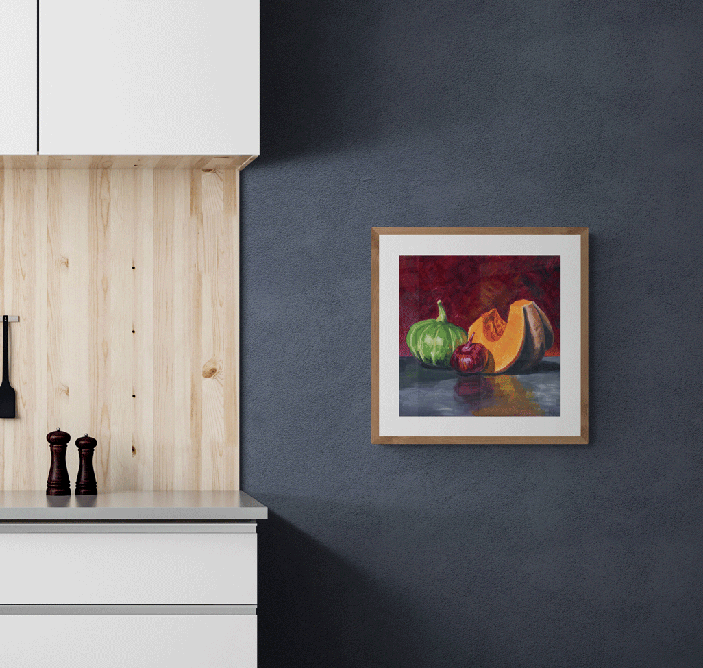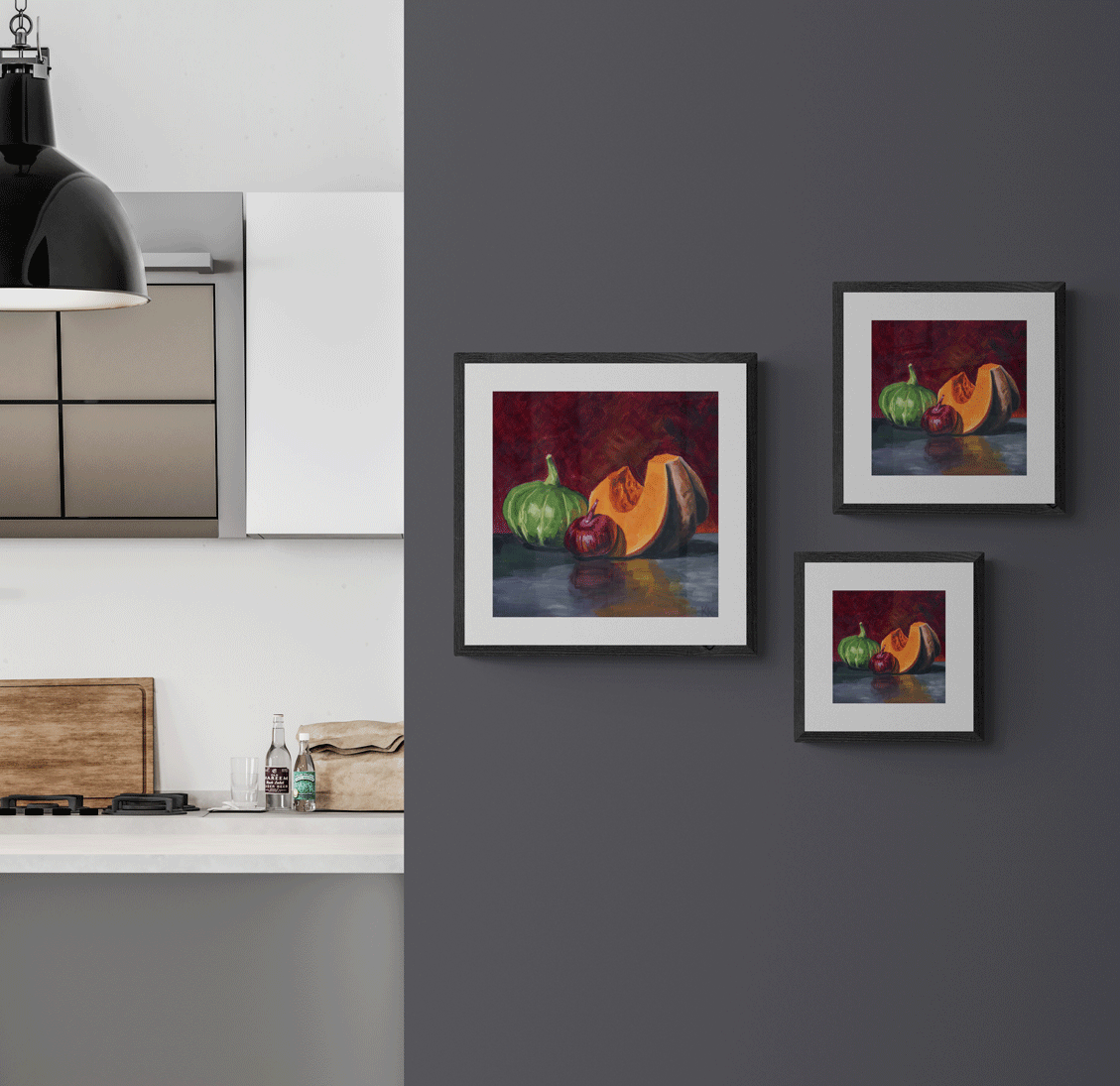 The Still Life collection is reproduced in a museum-grade giclée print featuring cold press natural 100% cotton rag media with a heavy weight of 340 gsm. The media has a lovely texture and great color rendition.